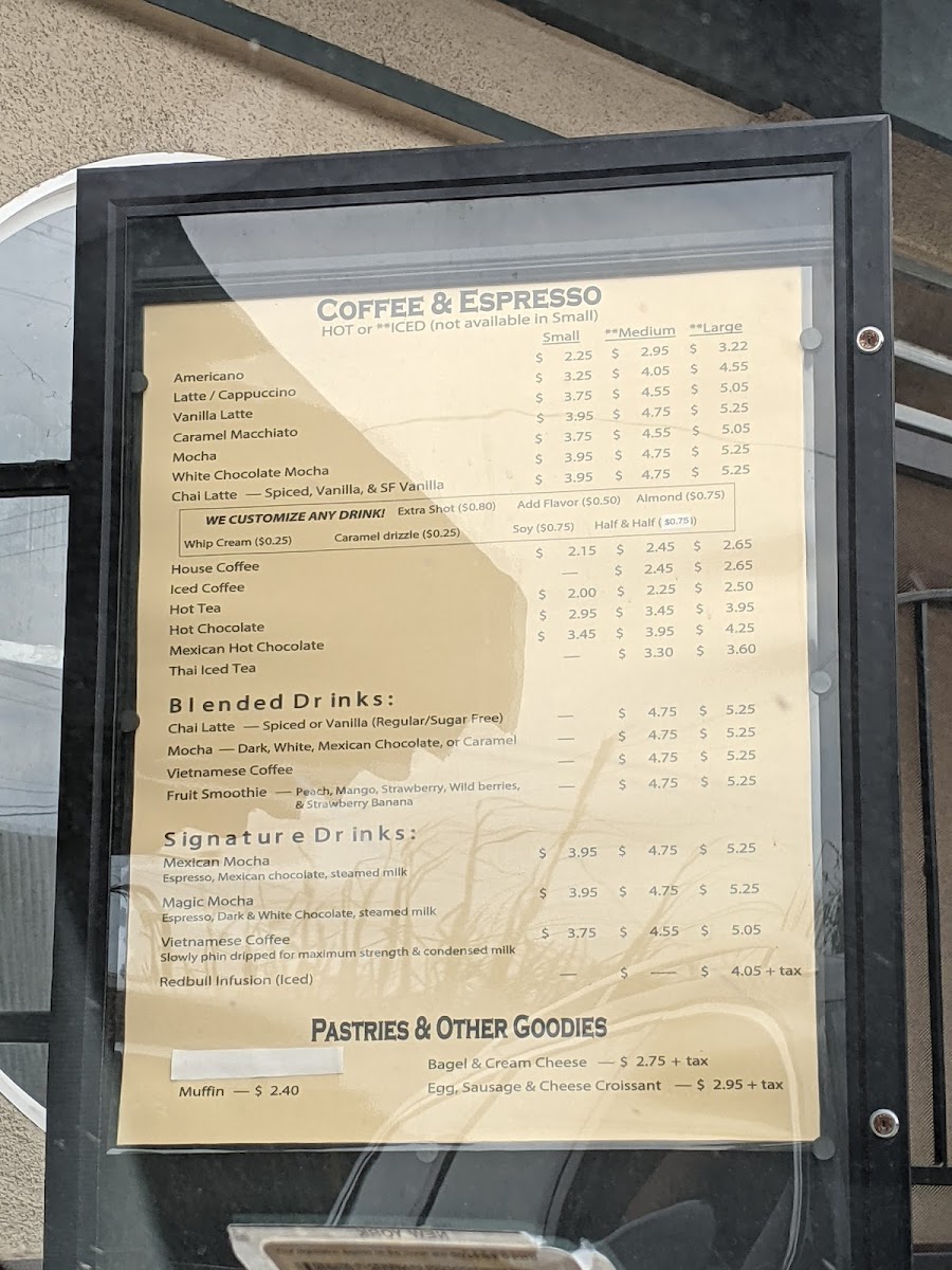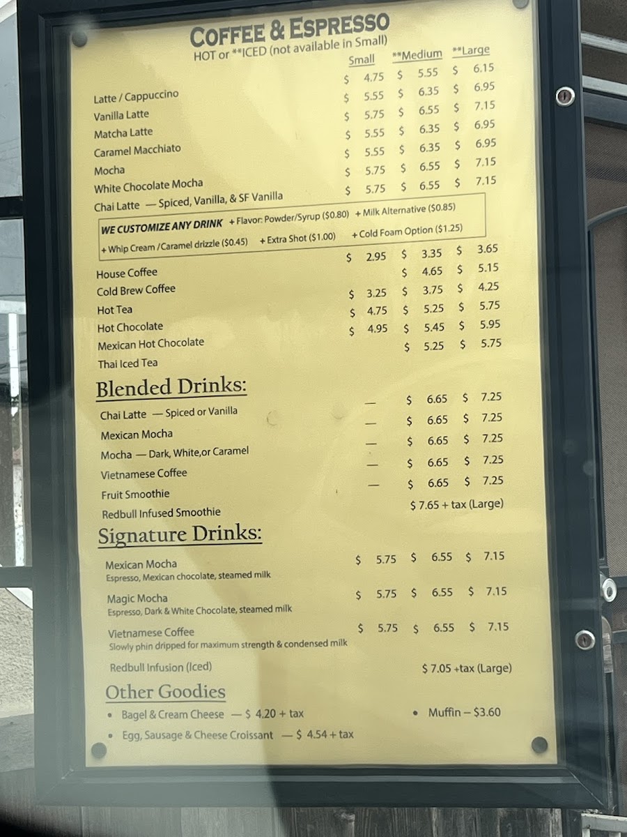 The coffee here competes fiercely against national chains, as pointed out by Al Markby, who remarked on the superior taste. The menu features a variety of beverages, including the popular Mexican Mocha, which customer Grace Fleming highly recommends for its rich flavors. The quality of the coffee is notably fresh and bold, appealing even to die-hard Starbucks fans like Matt Evans, who found it to exceed his expectational standards significantly.